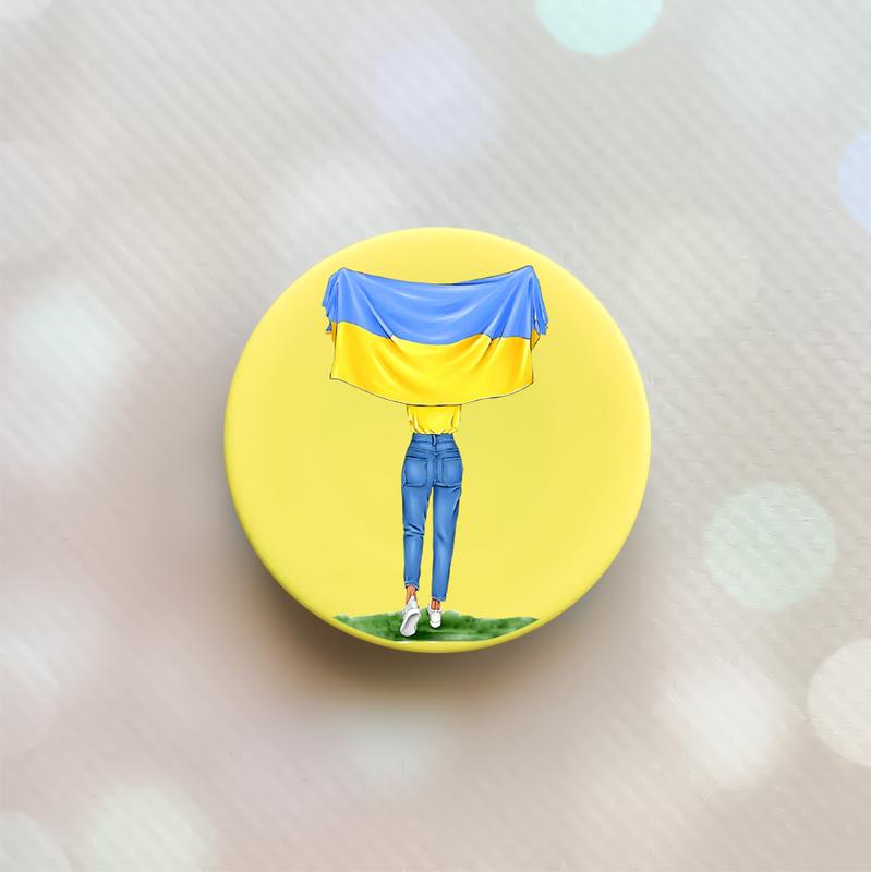 Держатель для смартфона / планшета попсокет popsocket желтый :: девушка с флагом (принт 26...
