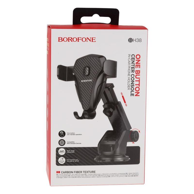 Увага! Зважаючи на особливості розрахунку з постачальником, даний товар відправляємо тільки за повною або частковою передоплатою. Автотримач Borofone BH38 Magic - стильний пристрій, яке лаконічно впишеться в інтер'єр автомобіля і практична конструкція якого допоможе користувачеві зафіксувати смартфон за допомогою однієї руки. Модель виконана з телескопічною ніжкою, можливість регулювати кут її нахилу та наявність шарніра надають можливість розташувати утримуваний гаджет в найбільш зручному положенні. Тримач виготовлений з комбінації полікарбонату і ABS пластику. Майданчик для кріплення смартфона реалізована з імітацією переплетення карбонового волокна, що у поєднанні з текстурованою поверхнею надає аксесуару привабливий зовнішній вигляд. Фіксація гаджета здійснюється розсувною системою з кнопкою на центральній панелі, при тиску смартфона на яку бічні фіксатори надійно захоплюють його, при цьому нижня підставка забезпечить додаткову безпеку. З допомогою вакуумної присоски тримач можна закріпити на торпедо авто або на лобове скло. Отримуйте прибуток з товарними позиціями Borofone оптом.