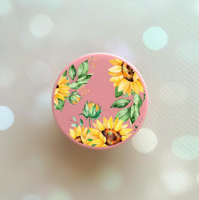 Держатель для смартфона / планшета попсокет popsocket розовый :: подсолнухи (принт 288)