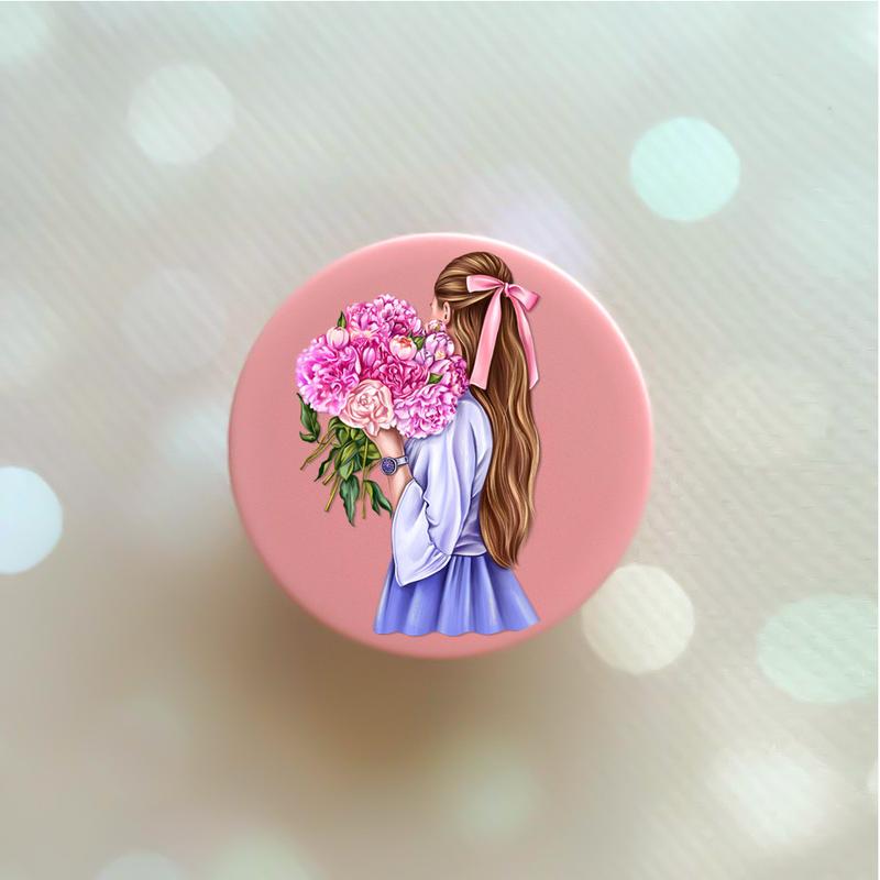 Держатель для смартфона / планшета попсокет popsocket розовый :: девушка с пионами (принт...