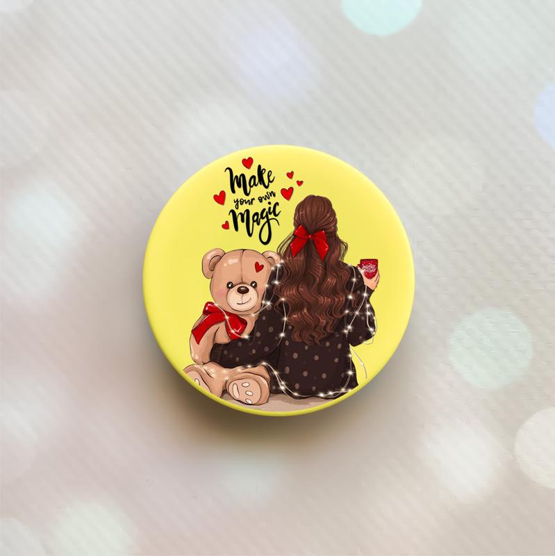 Держатель для смартфона / планшета попсокет popsocket желтый :: девушка с мишкой (принт 18...