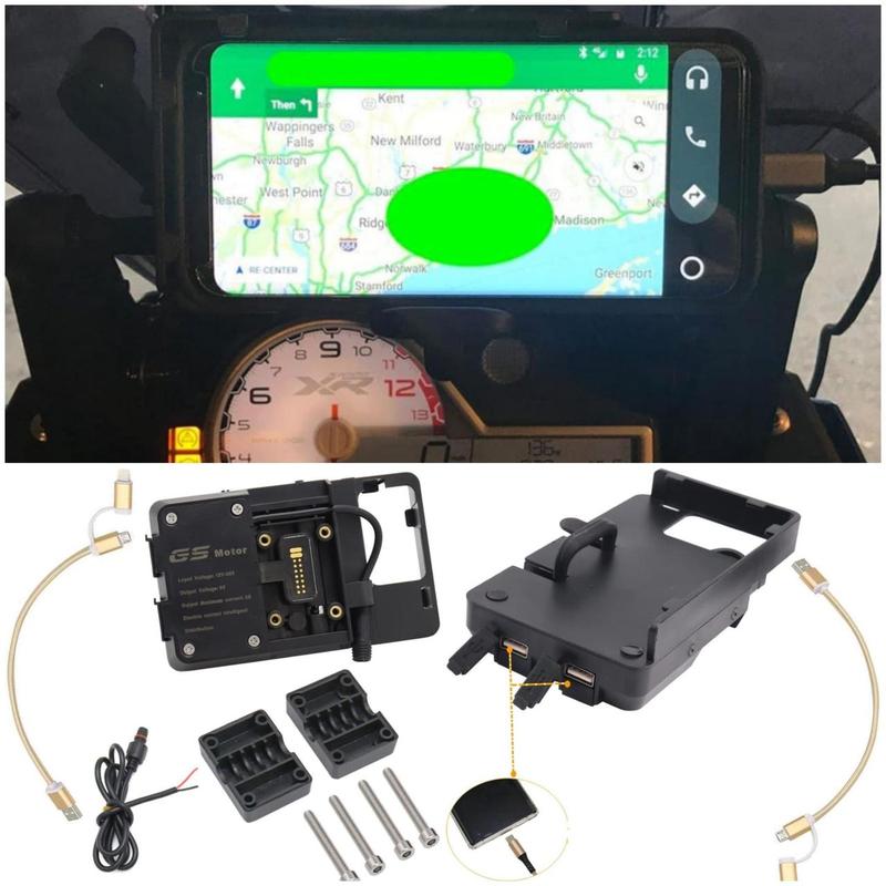 Тримач навігатора/мобільного телефону з зарядним пристроєм USB для мотоцикла Сумісне з BMW R1200GS R1250GS F800GS F850GS S1000XR R1200RS, сумісні з Honda CRF1000L Africa Twin CRF1000L 2016 Заряджайте мобільні телефони, відеокамери, BT-адаптери та фотоапарати через навігаційне кріплення. Виготовлений з високоякісного ABS пластику, не піддається старінню і стійкий до стирання Кріплення для бездротової зарядки є універсальним і може використовуватися на всіх мотоциклах, але 12-мм монтажний кронштейн необхідно придбати окремо для встановлення. Можна використовувати мобільні телефони з функцією бездротової зарядки, але навіть ті, що не мають функції бездротової зарядки, можна використовувати за допомогою USB-кабелю. Товар з вітрини, може бути пошкоджена коробка