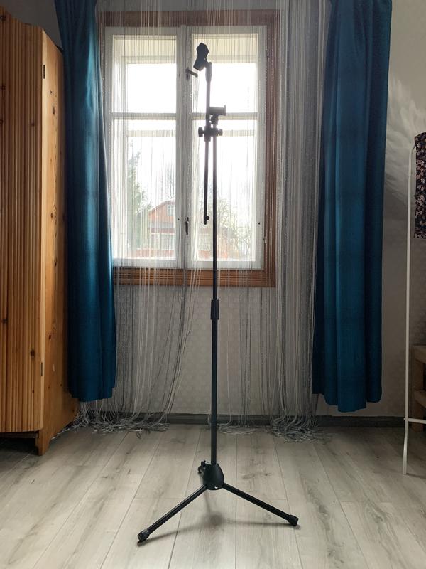 Высочайшая высота - 133 см Самая низкая - 67 см Есть две насадки (для телефона и для микрофона) Черного цвета Насадки снимаются и можно прикрепить как сверху так и сбоку
