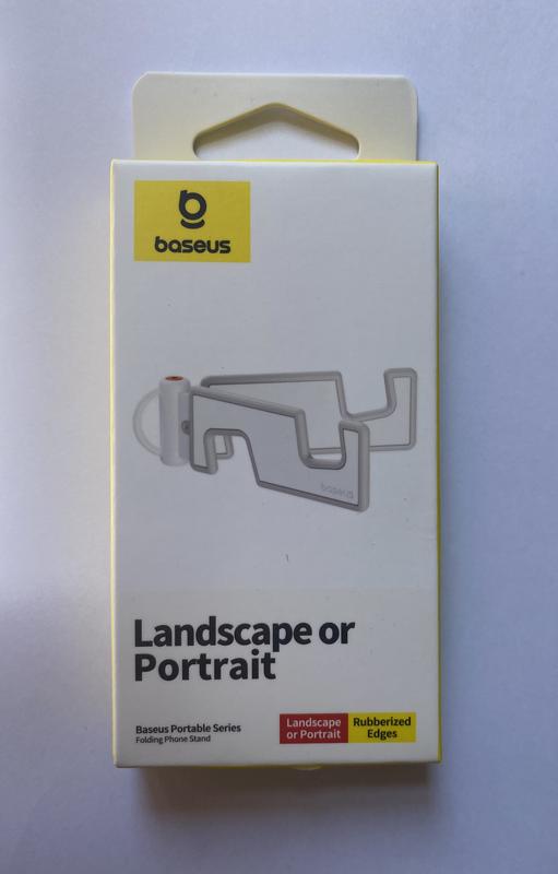 Подставка для телефона от бренда Baseus. Телефон может стоять на подставке как в вертикальном так и горизонтальном положении. Имеет компактные размеры а именно 87х26 мм и вес 12.5g. Подставка изготовлена из пластика который прорезан вокруг. Два выреза на подставке имеют разный наклон. Подставка имеет ушко за которое ее можно зацепить к ключу и чему-то другому или повесить на крючок.