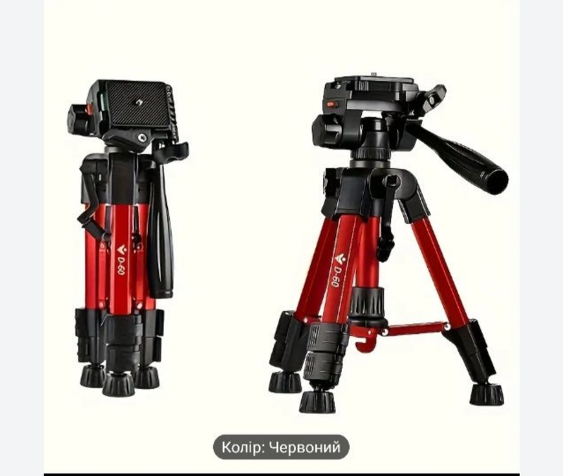 Штатив для камеры и смартфона, красного цвета. Заказавшая 2, второй не приключился. Уже самопроверилась, стоит устойчиво, регулируется во многих аспектах