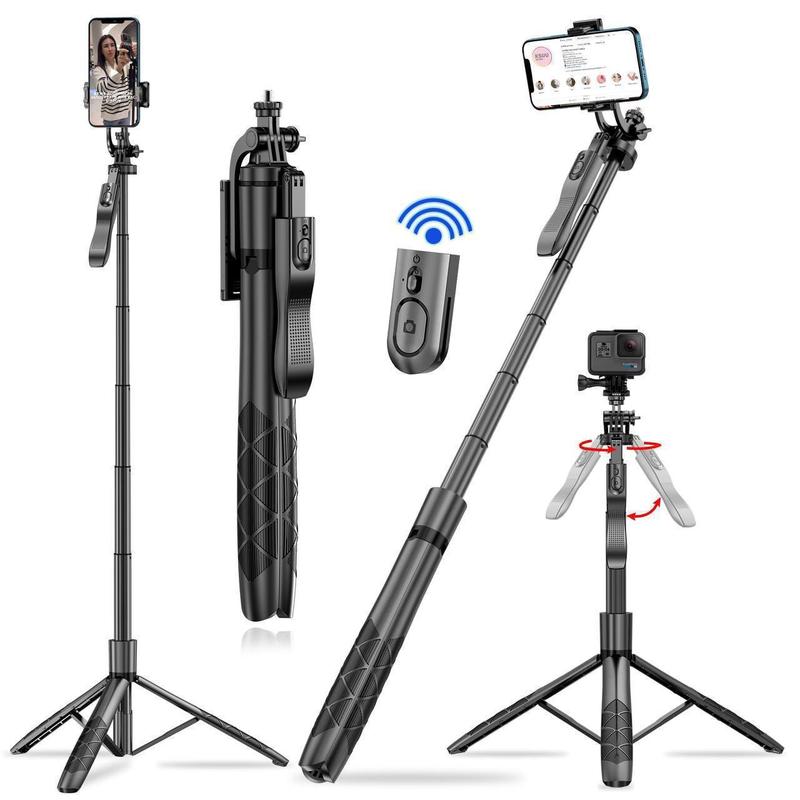 Штатив KS - ідеальний вибір для тих, хто цінує зручність і надійність у використанні; •Має пульт дистанційного керування; •Основні матеріали: ABS + Алюмінієва сплав; •Розмір виробу: 33,6×7,5×3,75 см; •Розгорнута довжина: 153 см; •Згорнута довжина: 33,6 см; •Тримач для монтажу: 6,5-10 см; •Батарея: CR1632 (замінювана).