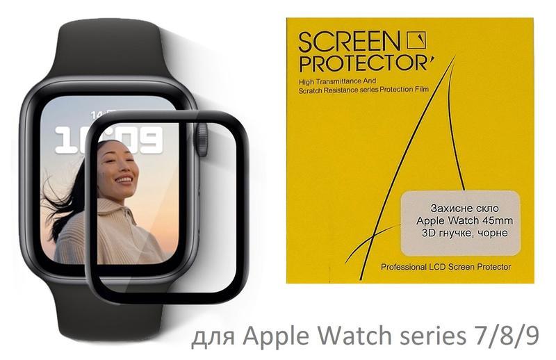 Захисне скло для apple watch series 7/8/9 45mm full glue (0.3 ...