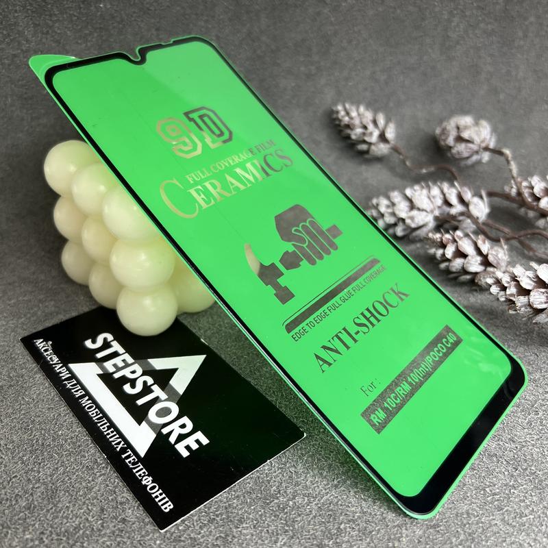 Защитное гибкое стекло 3d для xiaomi redmi 12c ceramics керамическое с черной рамкой полны...