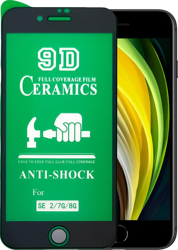 Противоударная защитная пленка ceramics для apple iphone 7, iphone 8 с черной рамкой, глян...