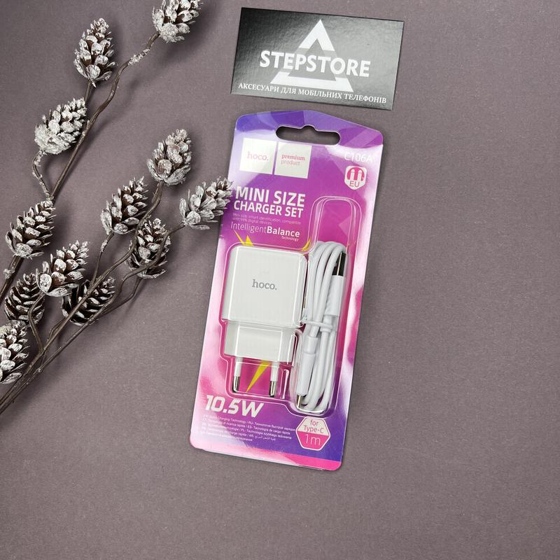 Бренд - HOCO Тип - сетевой адаптер Материал - пластик Совместимость - универсальная Входное напряжение - 100-240V Вилка европейского стандарта Количество USB портов - 1 Выход - 2.1А / 5V Комплектация: кабель USB to Type-C Компактные размеры Легко помещается даже в карман Универсальная совместимость с устройствами Обеспечивается качественная и быстрая зарядка Встроена защита от перегрузок и сбоев Присутствует устойчивость к перепадам напряжения Стабильная зарядка гаджета