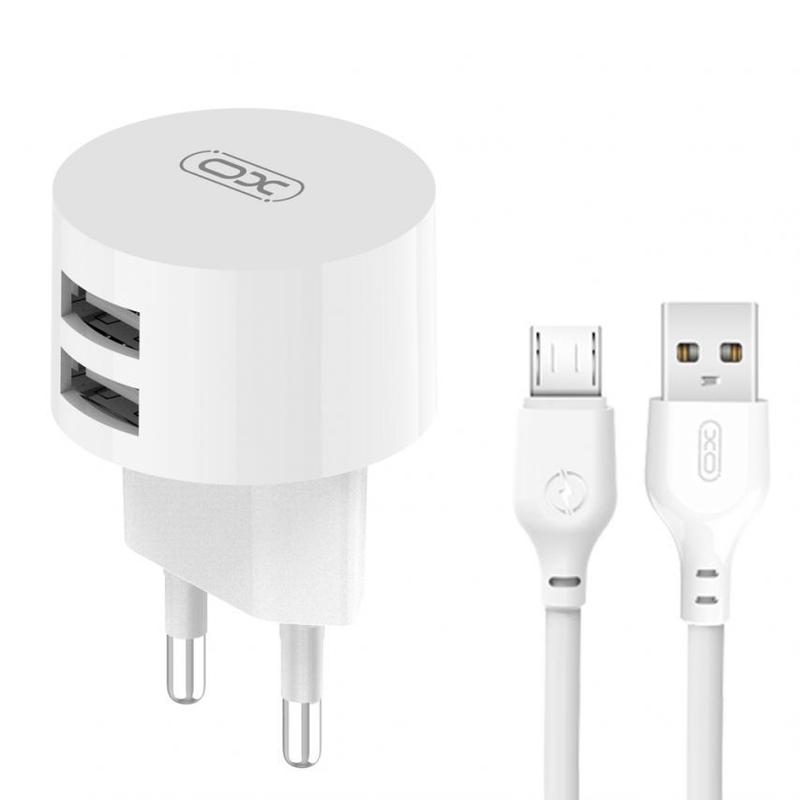 Сетевое зарядное устройство, адаптер xo l62 2usb/2.4a white + кабель micro white