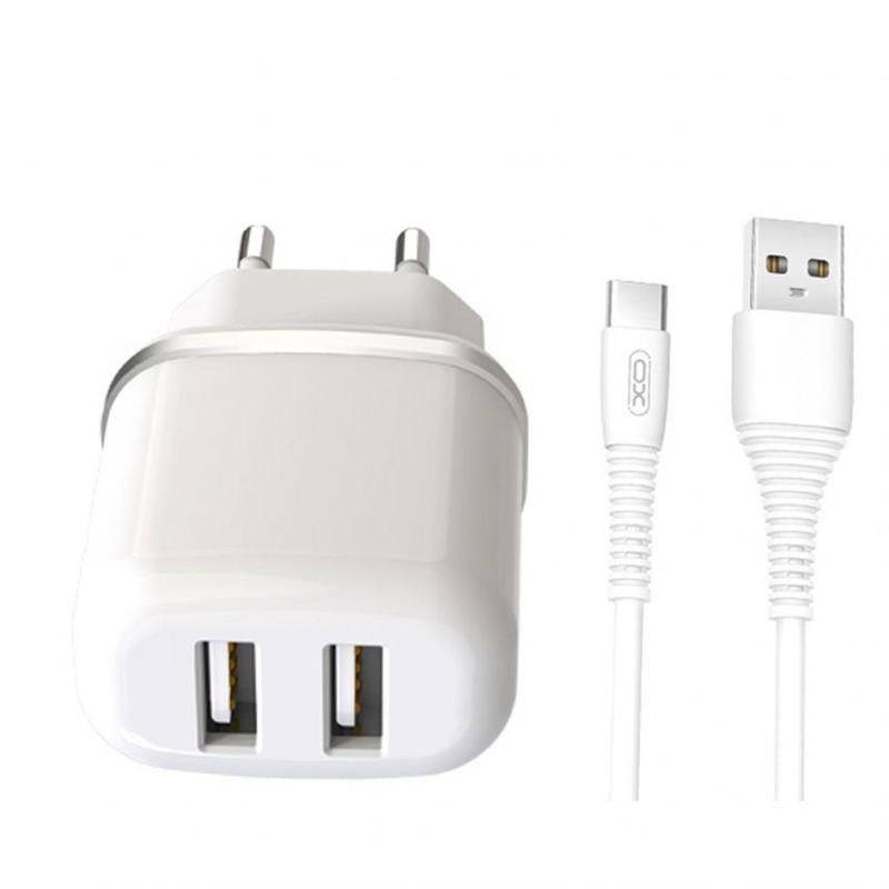 Сетевое зарядное устройство, адаптер xo l69 2usb / 2.4а + кабель type-c white