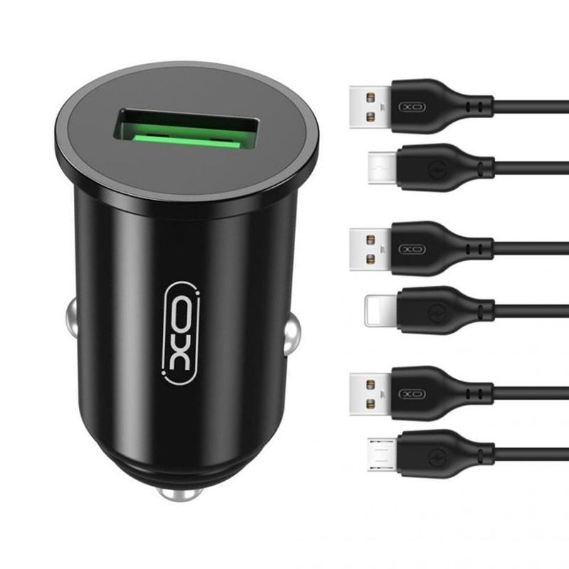 Зарядное устройство автомобильное xo tz12 1usb/qc3.0/3a/18w +кабель type-c black