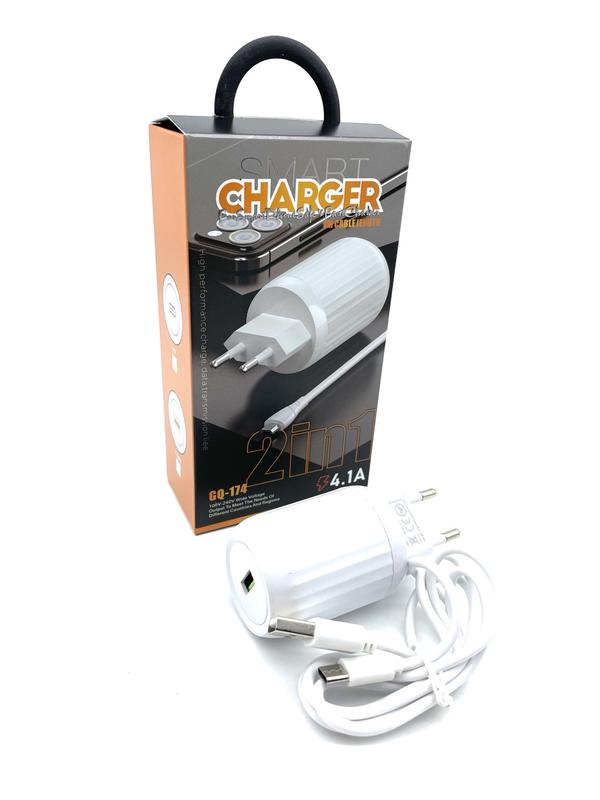 Мережевий зарядний пристрій 220 v gq-174 1 usb + кабель type-c 4.1a