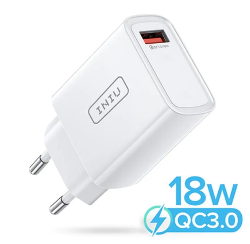 Сетевое зарядное устройство с быстрой зарядкой Quick Charge 3.0 - устройство поддерживает технологию быстрого заряда Quick Charge 3.0. Эта технология позволяет заряжать подключенные устройства в два раза быстрее, чем QC 1.0 и на треть быстрее, чем QC 2.0. Она автоматически идентифицирует тип подключенного устройства, гибко регулирует напряжение/силу тока и максимально быстро заряжает устройство. Высококачественное и современное зарядное устройство, которое имеет высокую степень надежности и долговечности. Невероятно компактный размер и совместимость с международными напряжениями (AC 100-240 В) делают его идеальным спутником в дороге. Легко помещается в карман, сумку или чемодан. Зарядное устройство оснащено интеллектуальным чипом для защиты ваших устройств от короткого замыкания, перенапряжения, перегрева и перегрузки по току. Огнестойкий корпус ABS не будет перегреваться при зарядке, обеспечивая отличную производительность, независимо от царапин, ударов или падений. Защитите себя и свое оборудование изнутри. Особенности: Современный и лаконичный дизайн прекрасно подойдет под любой интерьер. Быстрая зарядка. Компактные размеры. Прочный корпус. Огнезащитные материалы. Защита от короткого замыкания. Защита от перегрева. Повышенная прочность. Приятная цена. Характеристики: Вид: Сетевое зарядное устройство. Бренд: Iniu. Порты USB: 1. Вход: 100-240 V. Выход: 1 ports - Quick Charge 3.0. Выходной интерфейс: USB. Type: EU. Цвет: Белый. Материал: Пластик ABS + метал. Комплектация: 1 х Зарядное устройство (без кабелей). 1 х упаковка. * Внешний вид товара может незначительно отличаться от фотографий на сайте в зависимости от партии.