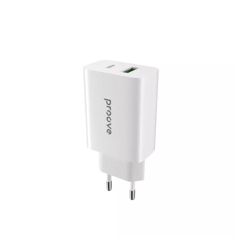 Сетевое зарядное устройство сзу proove rapid 20w (type-c + usb) (white)