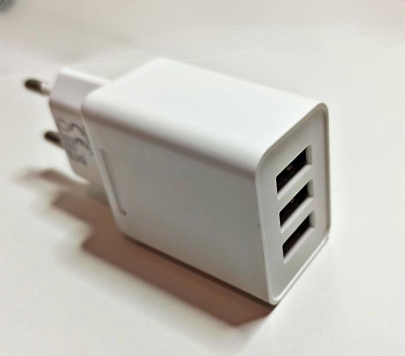 Характеристики: • Питание: 100-240V 50/60Hz 0.75A • Выходное напряжение: 15V до 1.5A, 9V до 2A, 5V до 3.5A • Количество USB портов: 3 • Размер: 89*38*26 мм • Вес: 35г • Цвет корпуса: белый