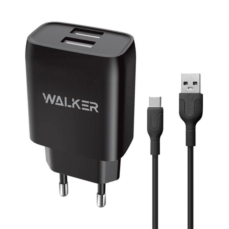 Сетевое зарядное устройство (адаптер) 2в1 walker wh-31 2usb / 2.1a + type-c black