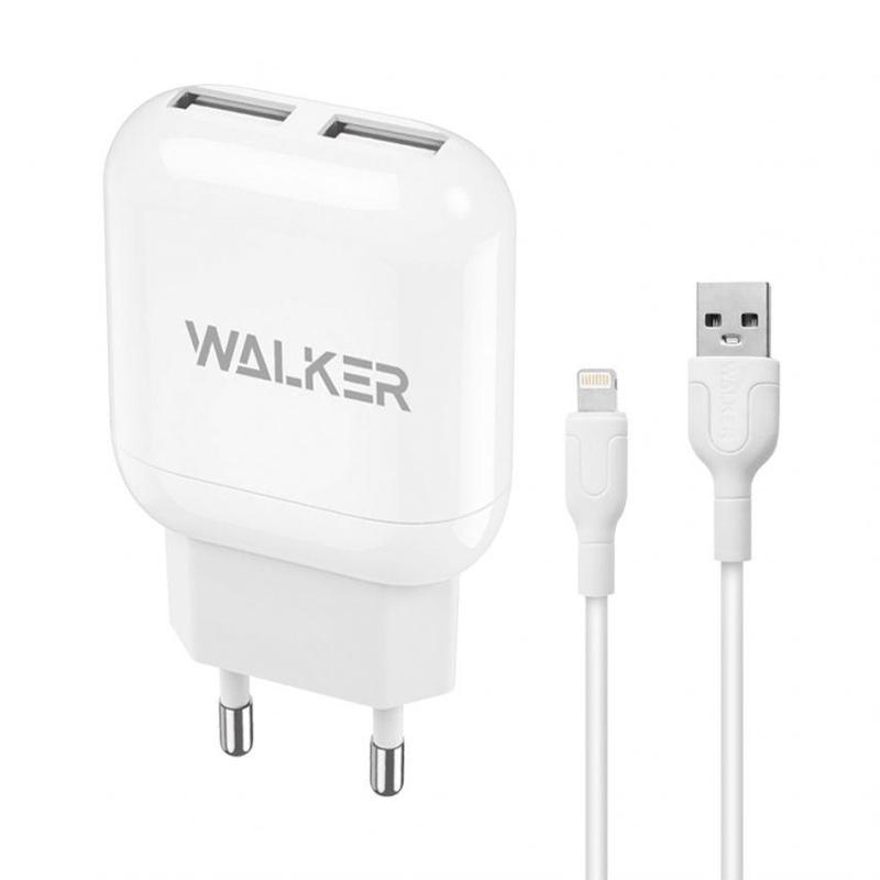 Сетевое зарядное устройство (адаптер) 2в1 walker wh-33 2usb / 2.4a + lightning white
