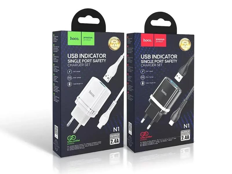 Зарядное устройство 220в usbx1 с кабелем usb - type-c hoco n1