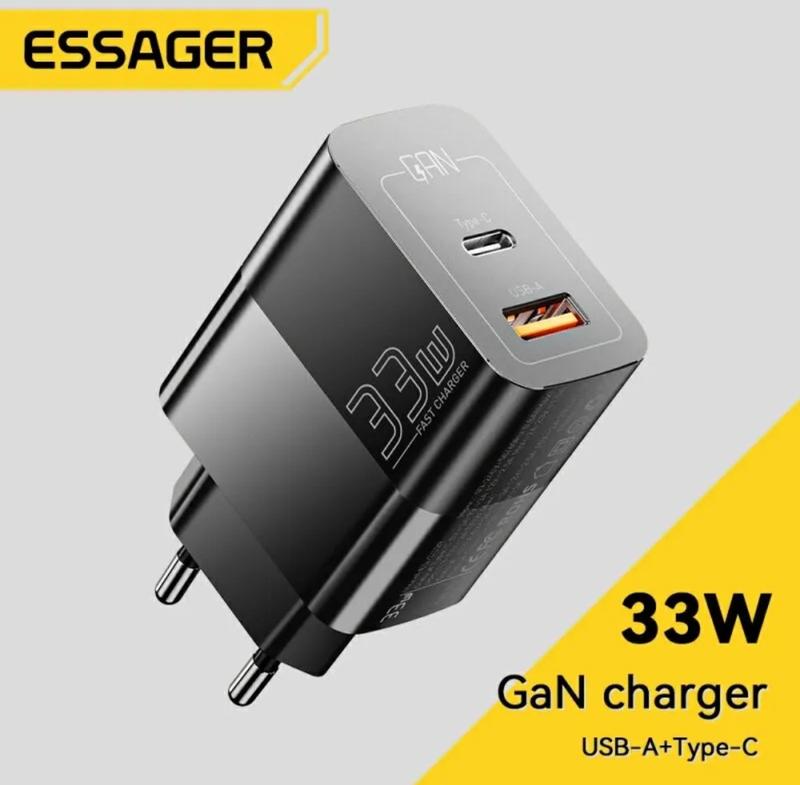 33W Зарядное устройство с USB и type-C для телефона с быстрой зарядкой PD 30W. Одновременная зарядка двух устройств. Вход: 100-240 В переменный ток 50/60 Hz 0.8 A max. Выход USB-C: 5V = 3.0A 9V = 3.0A 10V = 3.0A, 12V=2.5A 15V=2.0A 20V=1.5A (максимум 30W) Выход USB-A: 5V = 3A 9V = 3A 10V = 2.5A 12V = 2.5A 20V = 1.5A (максимум 30W) Выход type-C+USB A: 5В/3.6А Цвет корпуса - черный.