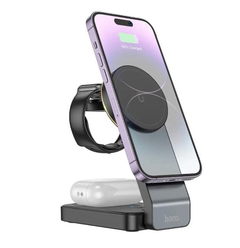 Беспроводная зарядка подставка hoco cq3 для iphone iwatch/airpods на 5-15w qi 3а черная