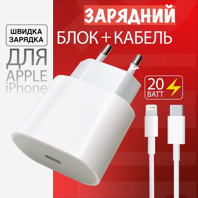 Зарядное устройство 20W USB-C для iPhone + Кабель Type C на Lighting для быстрой зарядки. Стильное зарядное устройство на 20W отлично справляется со своими задачами и поддерживает функцию быстрой зарядки. Она позволит вам быстро зарядить устройство дома, на работе или в дороге. Модели iPhone поддерживающие быструю зарядку: iPhone 13 Pro Max iPhone 13 Pro iPhone 12 Pro Max iPhone 12 Pro iPhone 12 iPhone 12 mini iPhone 11 Pro Max iPhone 11 Pro iPhone 11 iPhone XS Max iPhone XS iPhone XR iPhone X iPhone 8 Plus iPhone 8