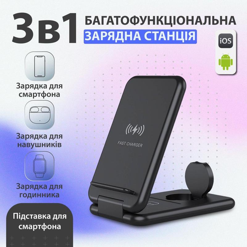 Док станция 3 в 1 для apple и android 15 вт быстрая зарядка подставка для наушников часов...