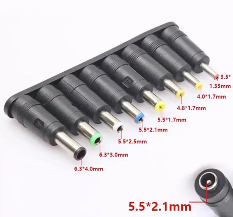 Адаптеры переходники с разными разъемами для различных моделей ноутбуков и роутеров. Работают в связке с кабелем DC 2.1*5.5 мм Также можно использовать с другими гаджетами. В комплекте 8 адаптеров: - 6.3 х 4.0 мм для Sony, Fujitsu, Samsung - 6.3 x 3.0 мм для Toshiba, NEC - 5.5 х 2.5 мм для Liteonit, Fujitsu - 5.5 х 2.1 мм для Compaq - 5.5 x 1.7 мм для Acer, Sony - 4.8 х 1.7 мм для Asus - 4.0 х 1.7 мм для Asus, Acer и Sony - 3.5 x 1.35 мм для Sharp и Dell