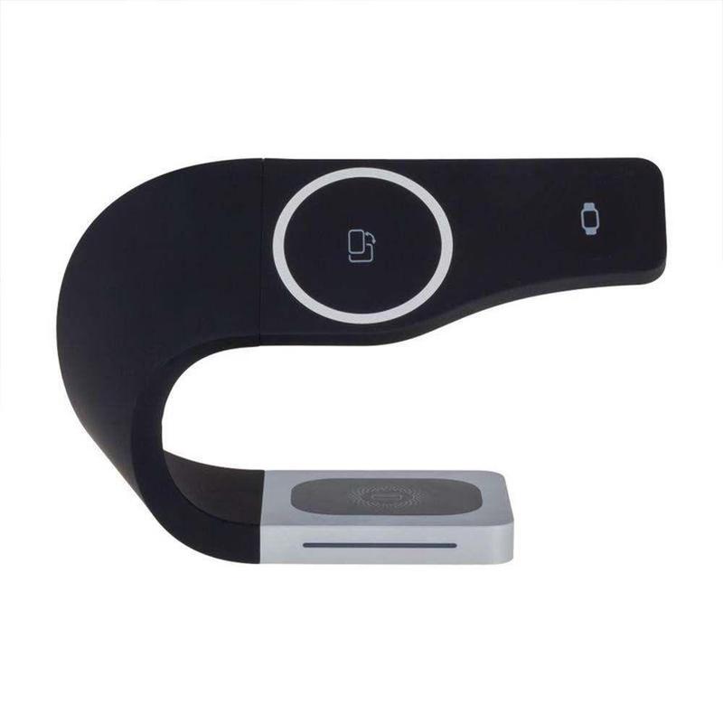 Беспроводное зарядное устройство с MagSafe 3in1 мультифункциональная док- станция, разработанная для максимально комфортной зарядки портативных гаджетов, поддерживающих технологию Qi: смартфонов, смарт часов, TWS наушников. Корпус устройства надежно собран, изготовлен из прочной комбинации ABS пластика, алюминиевого сплава, акрила и поликарбоната. Его продуманная конструкция и изогнутая форма позволяет одновременно заряжать гаджеты на 3 площадках для беспроводной зарядки. Устойчивое основание аксессуара оснащено светодиодной полосой для контроля за его работой, разъемом Type-C (female) для подключения сетевого кабеля, USB с силой тока на выходе 2A для проводной зарядки и площадкой для беспроводной зарядки кейса TWS гарнитуры. На изогнутой части находятся площадки для зарядки часов и смартфона, который может устанавливаться горизонтально или вертикально и крепится с помощью встроенных магнитов. Магнитное крепление совместимо с технологией MagSafe на iPhone и другими смартфонами, на которые необходимо предварительно зафиксировать входящее в комплект кольцо. Общая максимальная мощность на выходе беспроводной зарядки может достигать 15W и автоматически регулируется в зависимости от характеристик гаджета. Источником питания для аксессуара может служить повербанк или сетевой адаптер, который поддерживает быструю зарядку с силой тока и напряжением на выходе 2A и 9V соответственно.