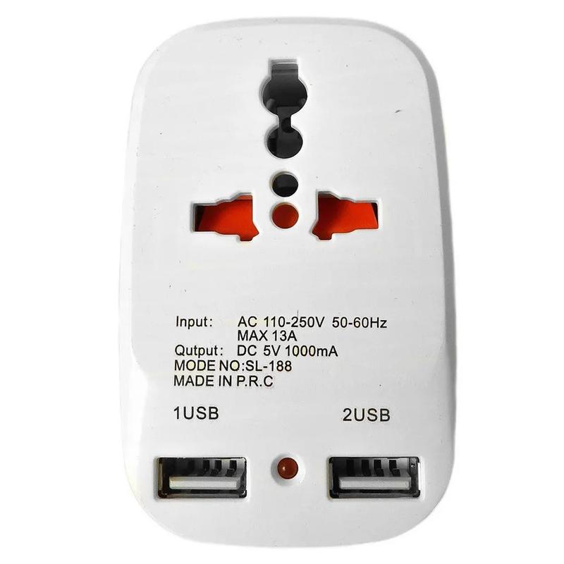 Сетевой разветвитель с usb travel adaptor 823, тройник с 2 usb выходами в розетку