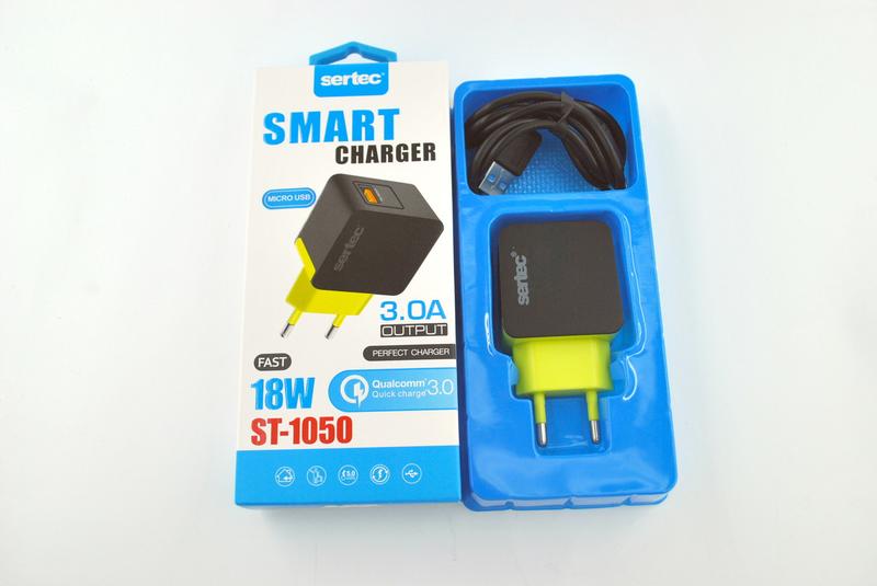 Зарядное устройство usb sertec st-1050 18w/3.0a 1 usb з кабелем micro usb (quick charge 3....