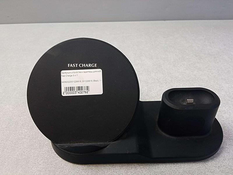 Зарядная станция Fast Charge 3-in-1 позволяет заряжать три подключенных девайса одновременно - смартфон с поддержкой Qi зарядки, смарт часы Apple Watch и кейс для AirPods (только для 1-го и 2-го поколений). Также она поддерживает возможность быстрой зарядки смартфона, и обладает встроенным защитным механизмом. Расстояние для беспроводной зарядки: до 7 мм Совместимы только с Apple Watch Series 1/2/3/4/5 Вход: 5 В/2 А, 9 В/1.67 А Выход: 5 В/1 A, 9 В/1.1 А Мощность на выходе: 5/7.5/10 Вт Материал: пластик. Внимание! Комиссионный товар. Уточняйте наличие и комплектацию у менеджера. Товар может быть продан в розничном магазине. Хотите скидку? Давайте обсудим. Предложите свою цену и мы посмотрим, что сможем сделать. Товар отпускается только по предоплате. Сумма предоплаты зависит от размера и веса посылки, но не менее 50 грн. Функциональное состояние товара Вы можете уточнить у менеджера!