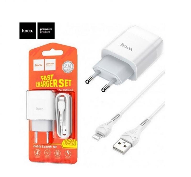 Зарядное устройство hoco 1xusb + кабель usb - lightning c72a white