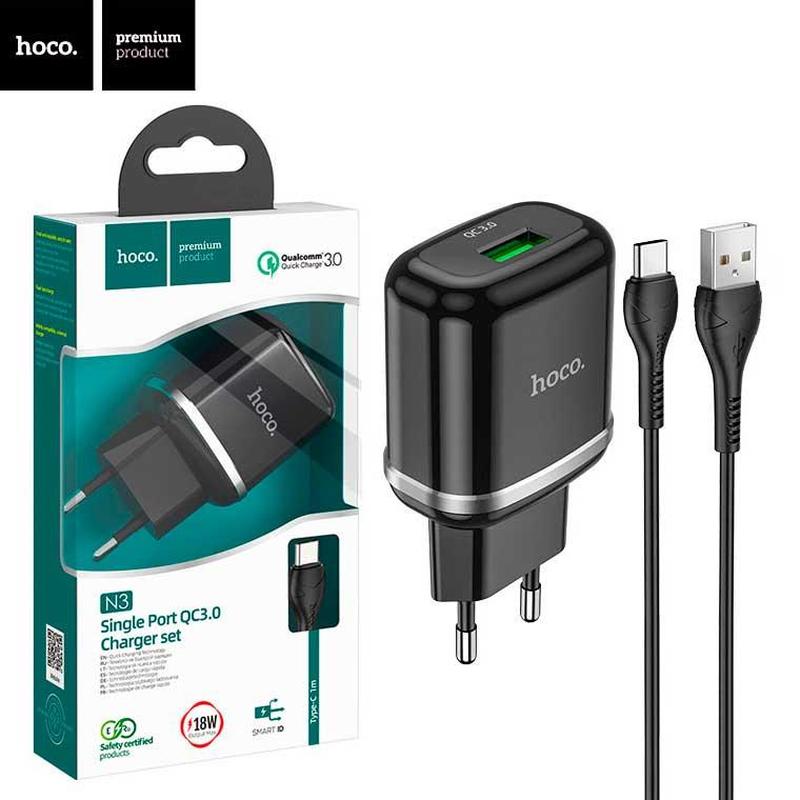 Сетевое зарядное устройство hoco n3 qc3.0 1usb 3a type-c black