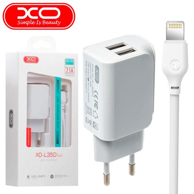 Сетевое зарядное устройство xo l35d 2usb 2.1a lightning white