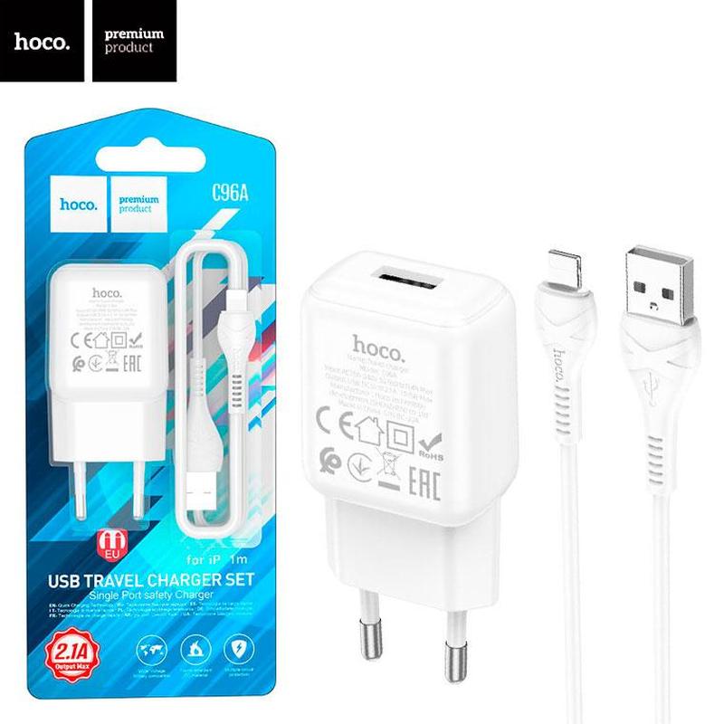 Сетевое зарядное устройство Hoco C96A 1USB 2.1A Lightning white