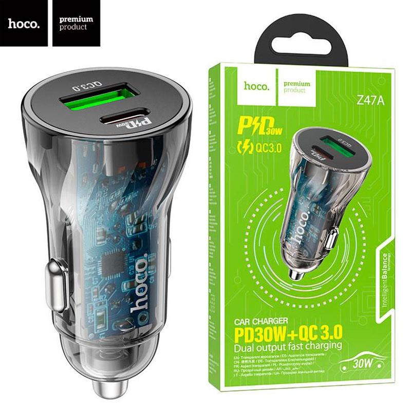 Автомобильное зарядное устройство hoco z47a pd30w + qc3.0 1usb black