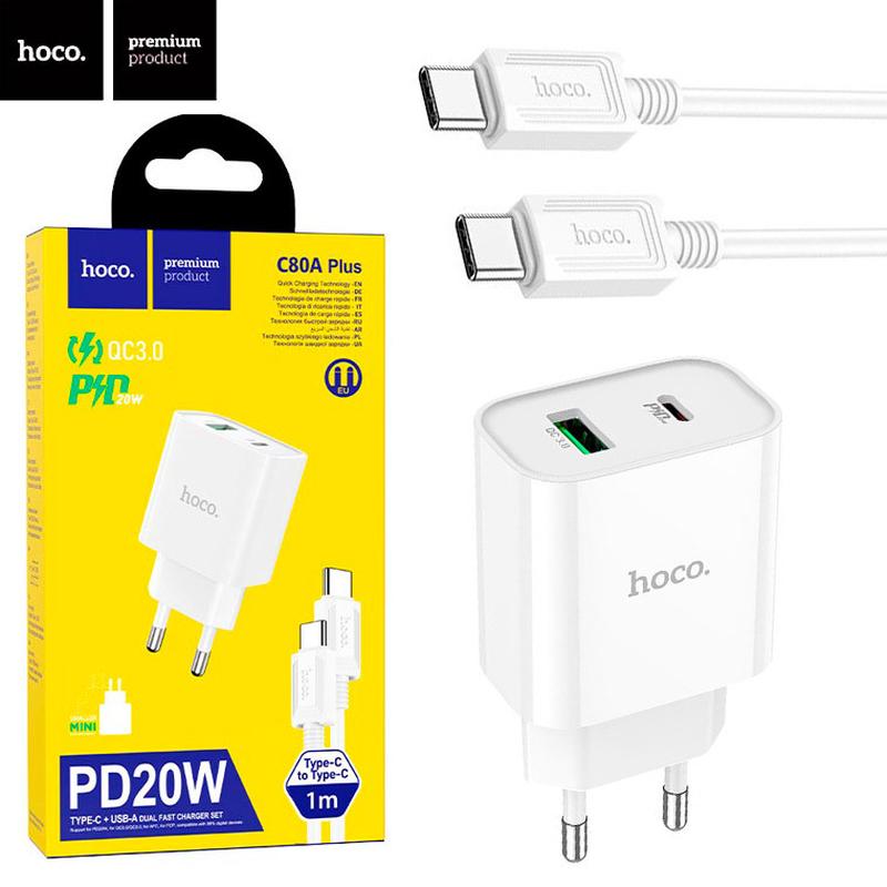 Сетевое зарядное устройство hoco c80a plus pd 20w + qc3.0 type-c type-c white