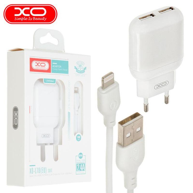 Сетевое зарядное устройство xo l78 2usb 2.4a lightning white