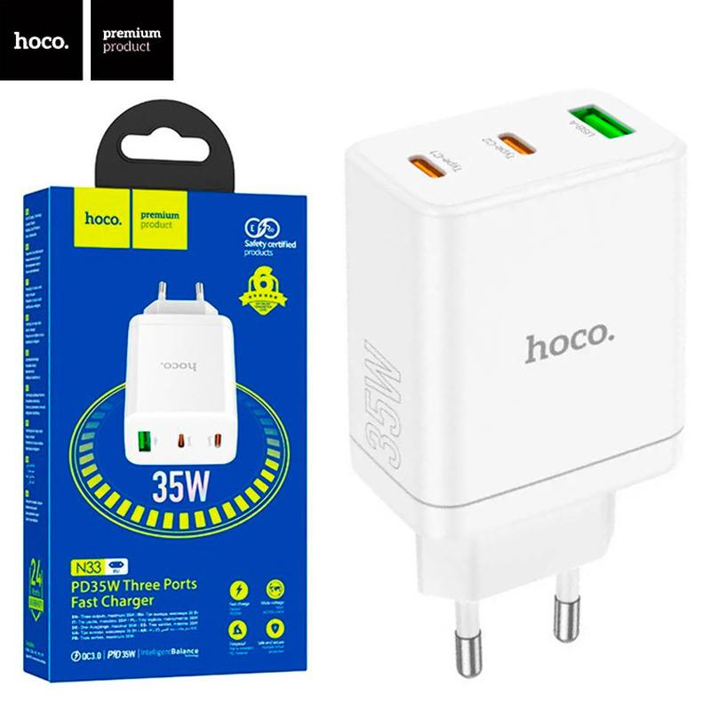 Сетевое зарядное устройство Hoco N33 PD35W 1USB 2Type-C 3A white