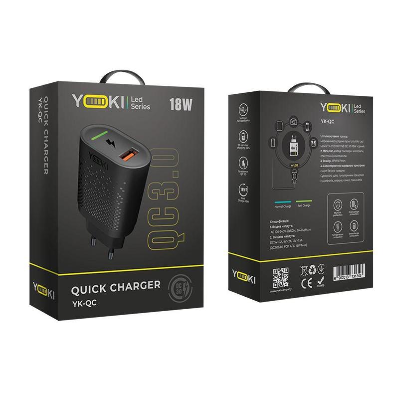 Сетевое зарядное устройство yoki led series yk-qc 3.0 18w usb output, black