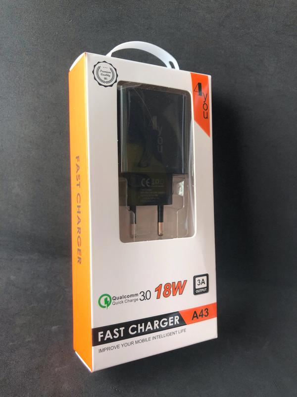 Зарядное устройство 4you a43 (18w, qc3.0, 3a, 1usb) с кабелем type c black