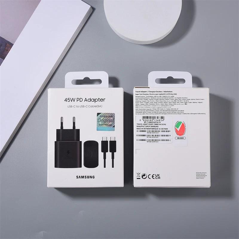Сетевое зарядное устройство с быстрой зарядкой SAMSUNG 45W PD Type-C - предлагает высокоскоростную зарядку для устройств, поддерживающих стандарт Power Delivery. Универсальная совместимость с большинством современных смартфонов и планшетов, поддержка быстрой зарядки. Сетевое зарядное устройство с выходной мощностью 45 Вт позволит максимально быстро зарядить совместимый со стандартом Fast Charging смартфон или планшет Samsung, подходит ко всем смартфонам с протоколом быстрой зарядки PD3.0. Особенности: Компактный и легкий дизайн. Широкая совместимость: помимо быстрой зарядки сетевое зарядное устройство может работать и в обычном режиме, тем самым поддерживая широкий модель ряд мобильных устройств. Однако максимальная скорость зарядки при использовании данного адаптера питания достигается только в устройствах с поддержкой стандарта Power Delivery 3.0. Супербыстрая зарядка для новых устройств: заряжайте новые устройства Galaxy максимально быстро, используя зарядное устройство мощностью 45 Вт. В комплекте также предусмотрен кабель USB Type-C - USB Type-C, поддерживающий аналогичную скорость зарядки. Стабильная и безопасная зарядка: безопасный и надежный источник питания - залог длительной службы гаджетов. В обычной среде этот ЗУ защищает от перегрузок при нестабильной подаче тока, коротких замыканиях, перепадах температуры и других ситуациях, способных повлиять на работоспособность устройств. Характеристики: Тип: Сетевое зарядное устройство + Кабель Samsung 45W. Количество USB-портов: 1. Быстрая зарядка: Power Delivery 3.0. Мощность 45W. Выходное напряжение 5V/9V/15V/20V, вход 100-240V. Выходной разъем: USB Type-C. Питание: сеть. Размер 60 x 30 x 20 мм. Комплектация: 1 х Сетевое зарядное устройство Samsung. 1 х Кабель Type-C длиной 1 метр. * Внешний вид товара может незначительно отличаться от фотографий на сайте в зависимости от партии.