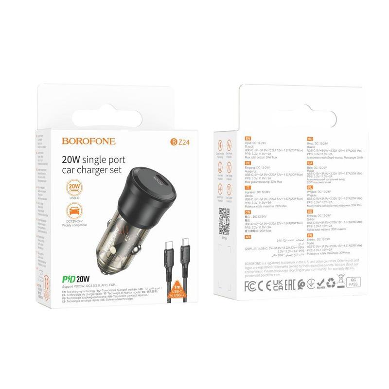 Авто зарядное устройство borofone bz24 1usb-c qc/pd20w+type-c to type-c