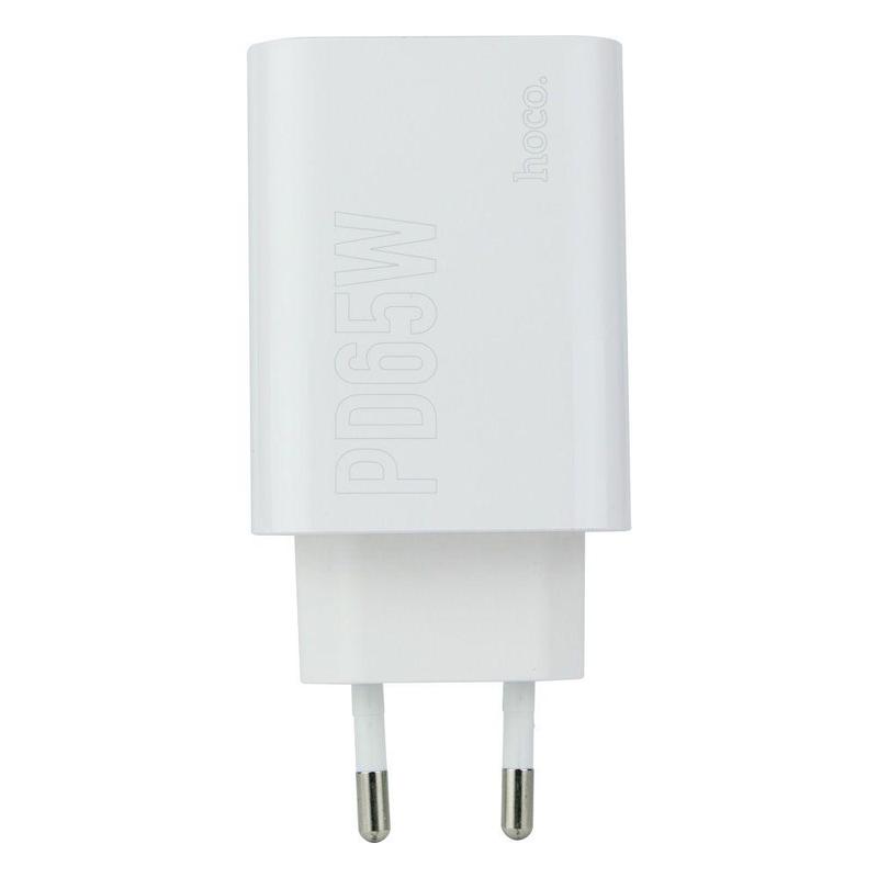 Сетевое зарядное устройство Hoco DC40 - компактный, мощный адаптер, который оснащён 3 интерфейсами и поддерживает технологии PD с мощностью до 65Вт и QC3.0. Модель имеет достаточно небольшие размеры и вес, реализована в современном дизайне, практичность которого сделает её повседневную эксплуатацию максимально комфортной. Корпус аксессуара выполнен со скругленными боковыми ребрами, его детали качественно собраны, имеют приятную на ощупь поверхность, изготовлены из сверхпрочного пластика, который убережет внутренние электронные компоненты от негативного внешнего воздействия. Устройство оснащено сетевой вилкой европейского стандарта, USB портом с максимальной мощностью на выходе 18Вт, парой разъемов Type-C, мощность на выходе каждого из которых может достигать 65Вт. Во время одновременного использования разъемов Type-C мощность на их выходе составит 20 и 45Вт, а при одновременной зарядке трех гаджетов максимальная мощность будет ограничена 60Вт. Аксессуар комплектуется кабелем Type-C - Type-C.