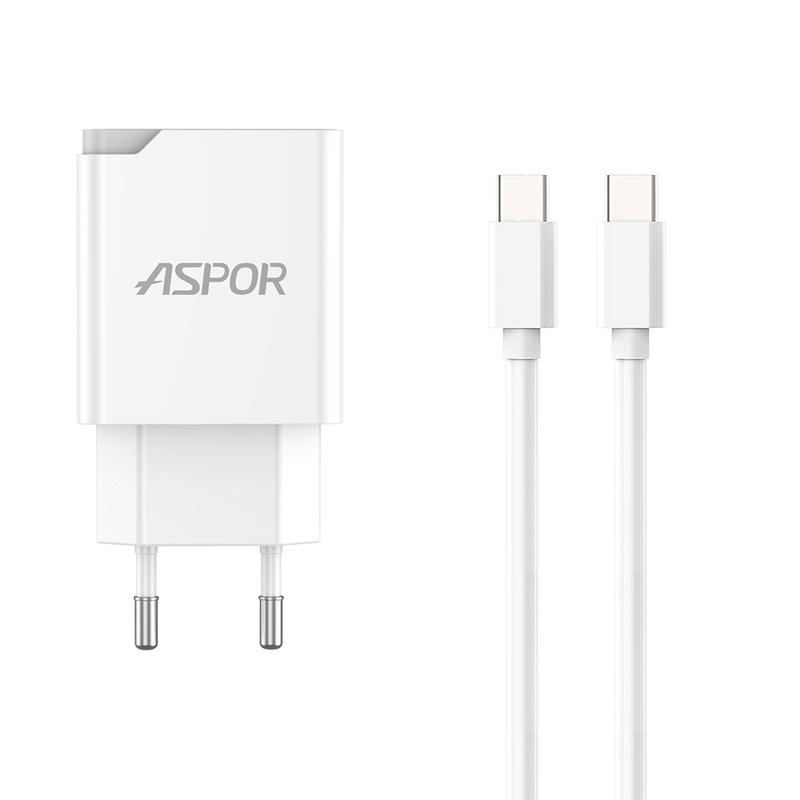 Сетевое зарядное устройство aspor a826 pd (20w/usb/type-c) + кабель type-c – type-c- белый