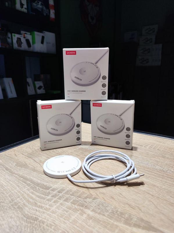 Двусторонняя, магнитная зарядка LICHEERS 3-в-1 позволит заряжать телефон, часы или наушники. Мощные магниты легко и надежно прикрепляется к вашему гаджету, центрирует катушки параллельно друг другу. Максимальная выходная мощность, которую выдает зарядка, составляет до 15 Вт. Благодаря небольшим размерам и ультратонкому корпусу вы легко сможете положить зарядку в сумку, рюкзак или даже в карман - таким образом вы можете заряжать свой девайс не только дома, но и на работе или во время поездки. Производитель: LICHEERS Совместимость: Apple iWatch, AirPods Pro, iPhone 12,13 Выходная мощность: 15 Вт id goodl00