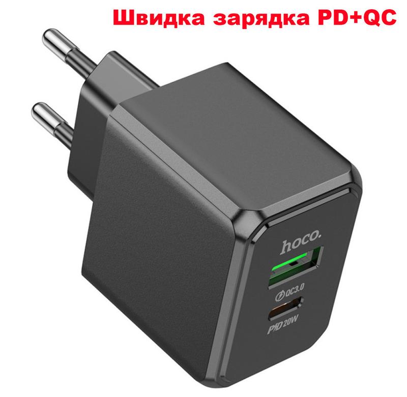 Сетевое зарядное устройство. быстрая зарядка pd20w + qc3.0 hoco cs14a