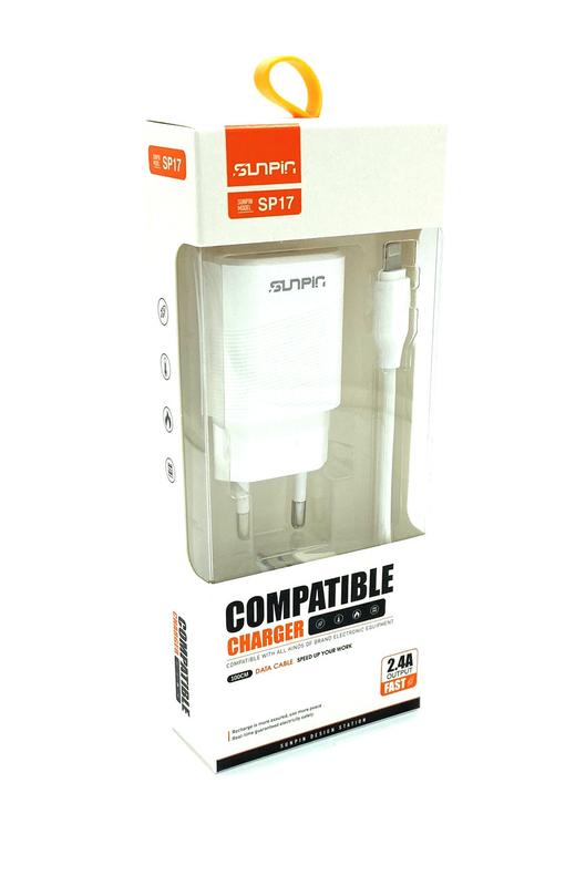 Адаптер питания / сетевое зарядное устройство sunpin sp-17 (5v/2.4a/1usb) + кабель lightni...